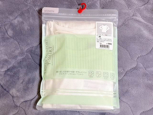 ワークマンで見つけた「レディースリブクルーネック長袖Tシャツ」。